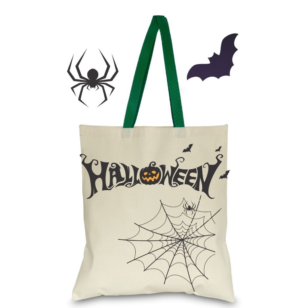 Bolsa de tocuyo Plana 40×35, en tela 140gr de poliester, sublimado para Halloween (25cm x39.5cm), asas de Nylon de 2cm de ancho x 60cm de longitud (Asas disponible en colores).